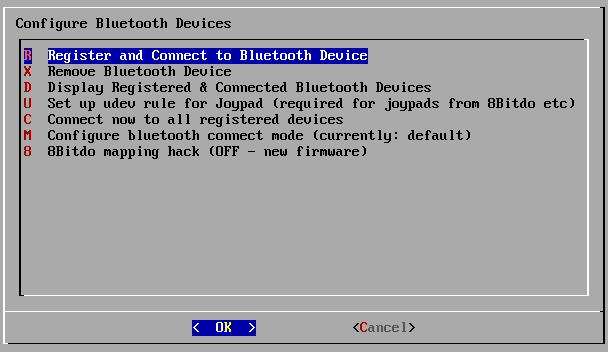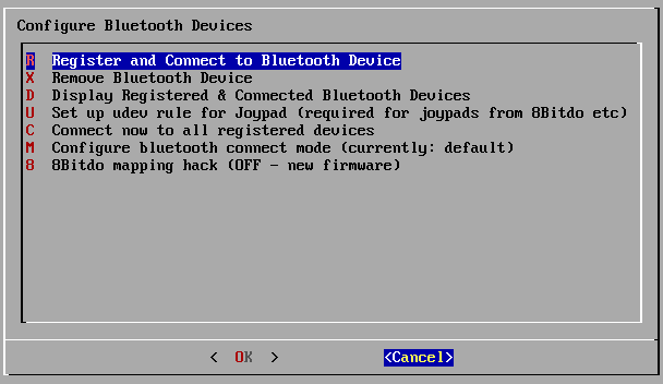 Your controller should now be connected properly via Bluetooth. Use your keyboard to select Cancel on the following menus until you are returned to the Nerdbox Configuration Menu. Using the connected USB controller, you will now be able to follow the general configuration steps to map your controller's buttons.